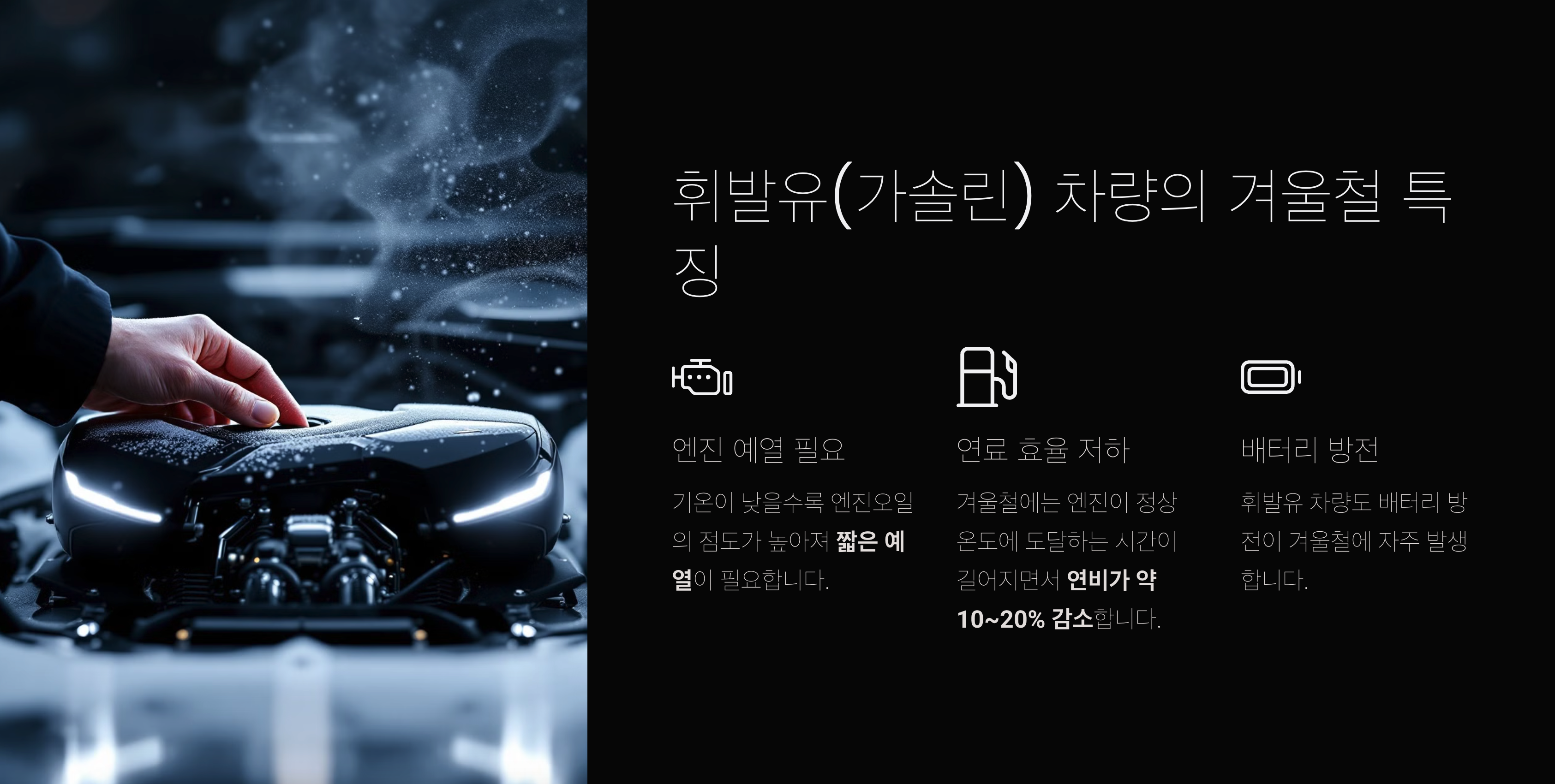 ✅ 휘발유 차량: 불필요한 장시간 예열을 피하고, 연비 절감을 위해 아이들링 최소화
