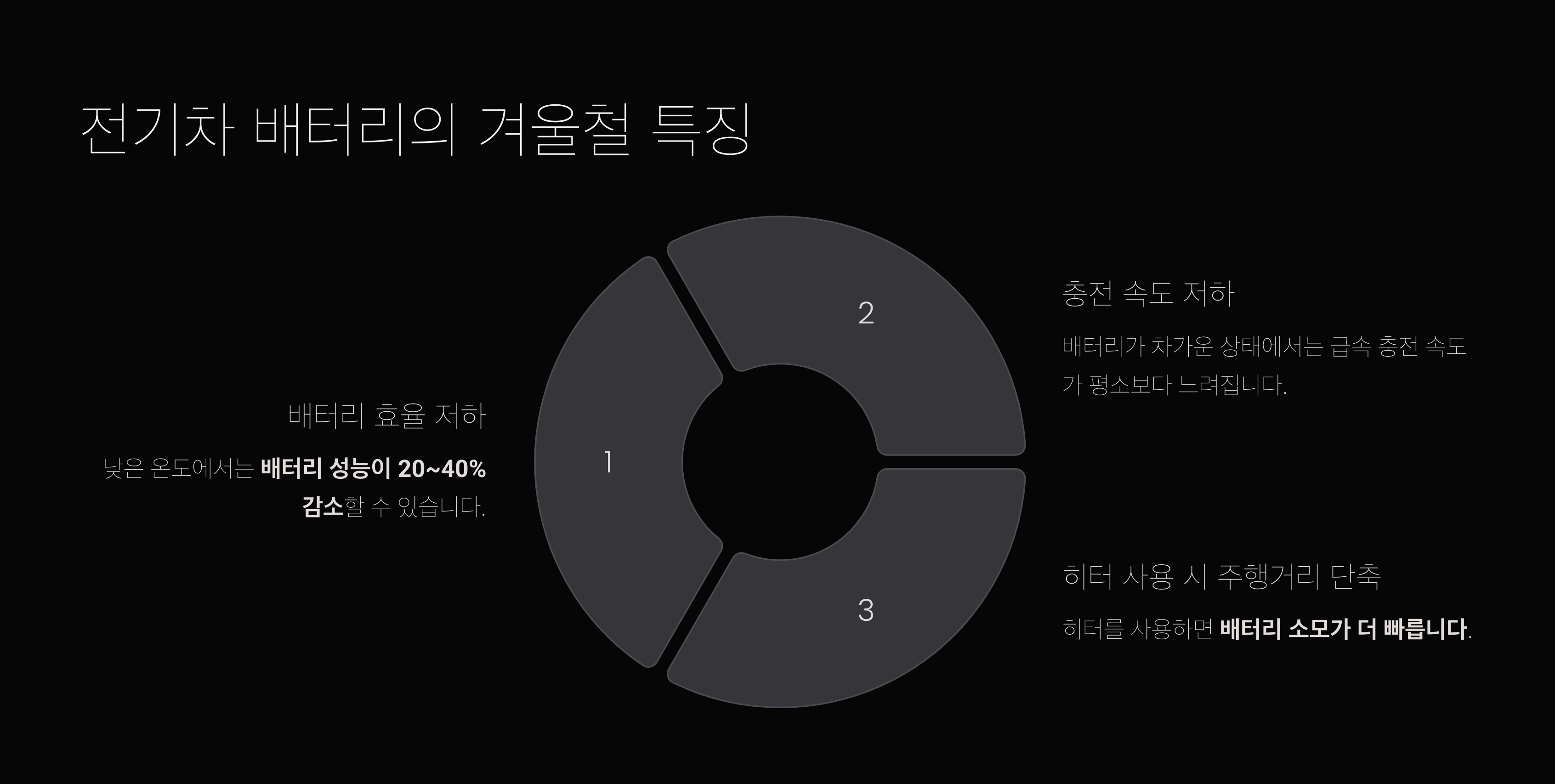 전기차는 겨울철에 배터리 성능 저하가 가장 큰 문제로 꼽힙니다. 배터리는 온도가 낮아지면 화학 반응이 둔화되면서 충전 속도가 느려지고, 주행 가능 거리도 줄어듭니다.