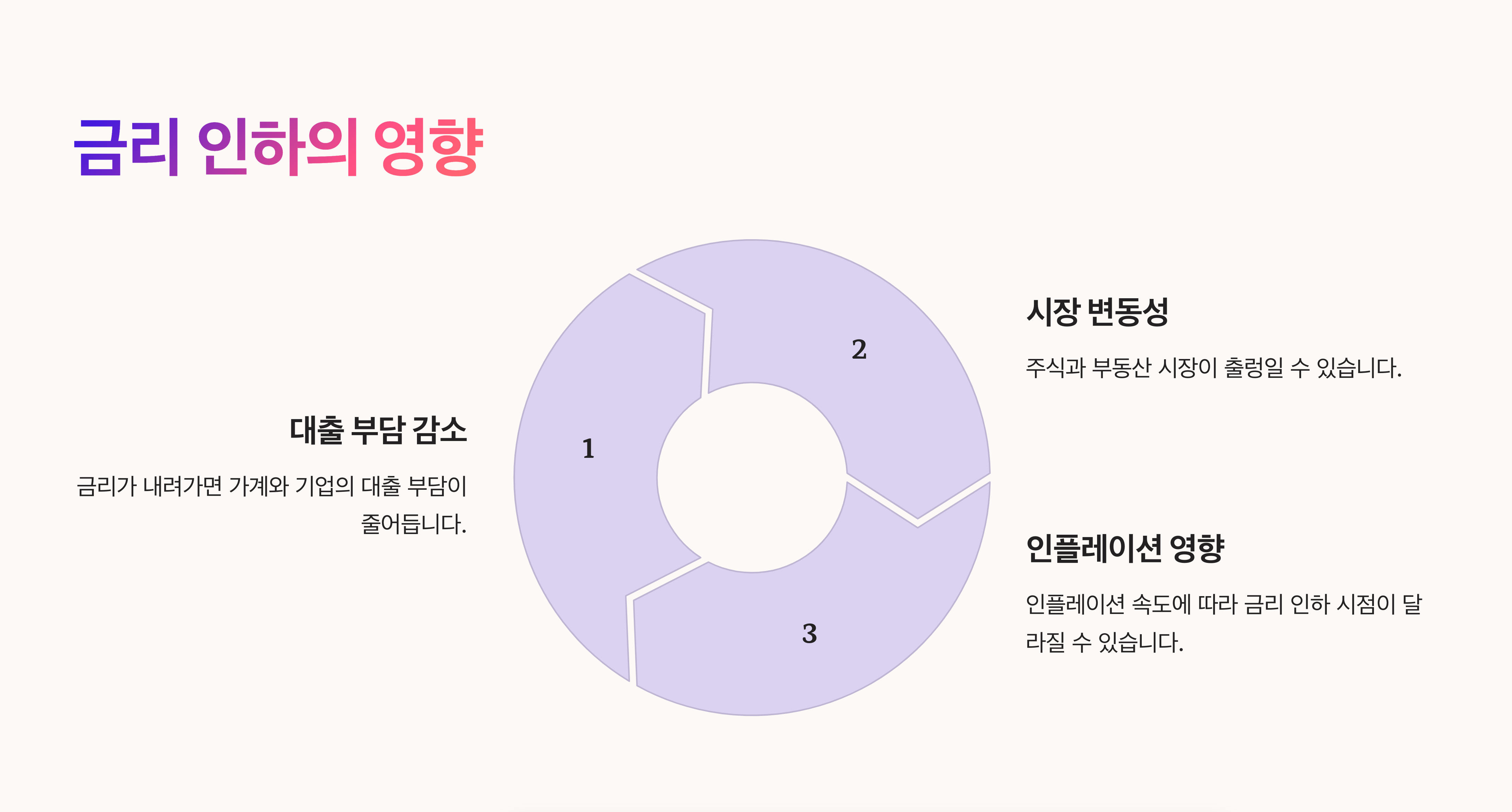 금리가 내려가면 대출 부담이 줄어들지만, 주식·부동산 시장이 출렁일 수도 있다. 신중한 접근이 필요하다.